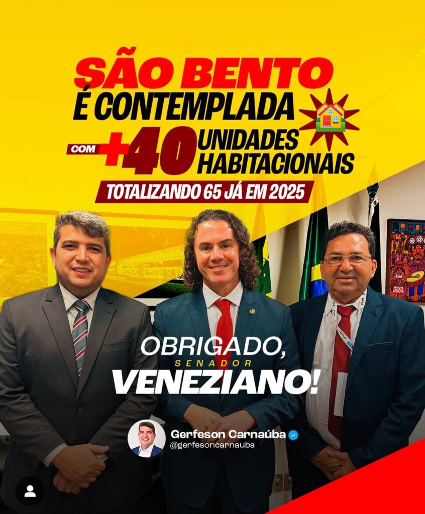 Em articulação de Veneziano, São Bento é contemplada com 40 casas do PAC seleções da gestão Lula; Gerfeson agradece ao senador