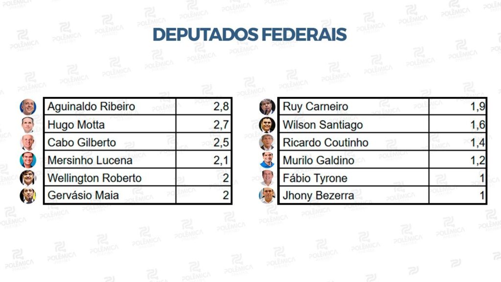 Nesta matéria, o Polêmica Paraíba disponibiliza os números da disputa por uma das 12 vagas do estado na Câmara Federal.
