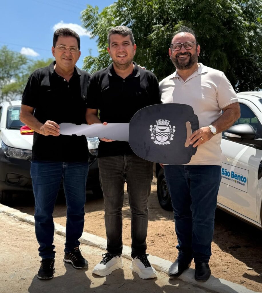 Na manhã deste sábado 9, o prefeito de São Bento, Gerfeson Carnaúba, o vice Francisco Crente juntamente com vereadores e secretários, participaram da entrega de dois novos carros para a secretaria de Educação e da inauguração da pavimentação da Ruinha do Xique-Xique.