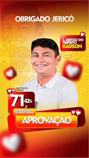 A gestão do prefeito de Jericó, Kadson Monteiro (PSB), mantém um alto índice de aprovação popular. De acordo com a pesquisa realizada pelo Instituto Logos no dia 24 de julho de 2025, mostra que 71,42% da população aprova o trabalho desenvolvido em seu segundo mandato.