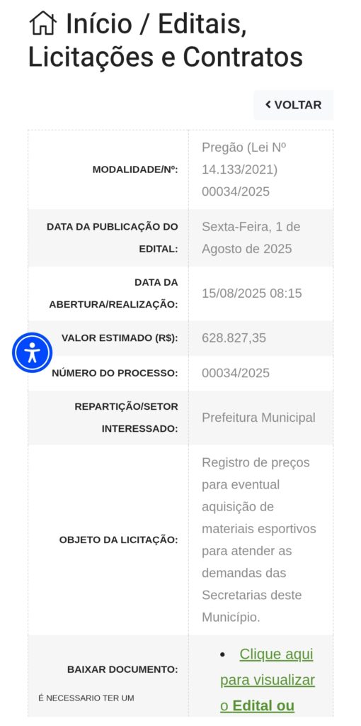 Segundo a publicação, os materiais adquiridos deverão atender às demandas de secretarias do município.